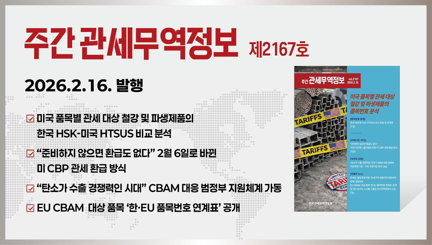 ※ 주간 관세무역정보 관련 의견 및 기사 제보는 이메일(custra@kctdi.or.kr)로 보내주시기 바랍니다.