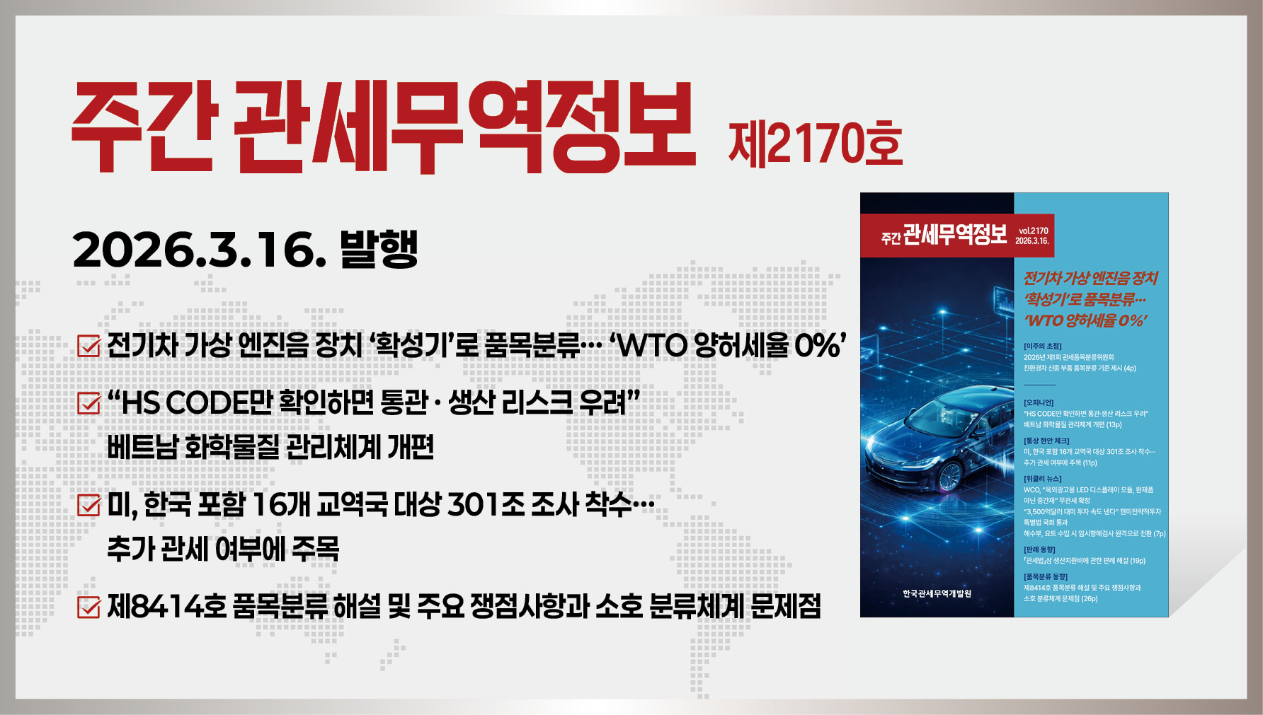 ※ 주간 관세무역정보 관련 의견 및 기사 제보는 이메일(custra@kctdi.or.kr)로 보내주시기 바랍니다.